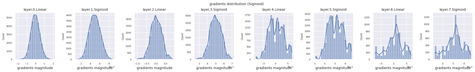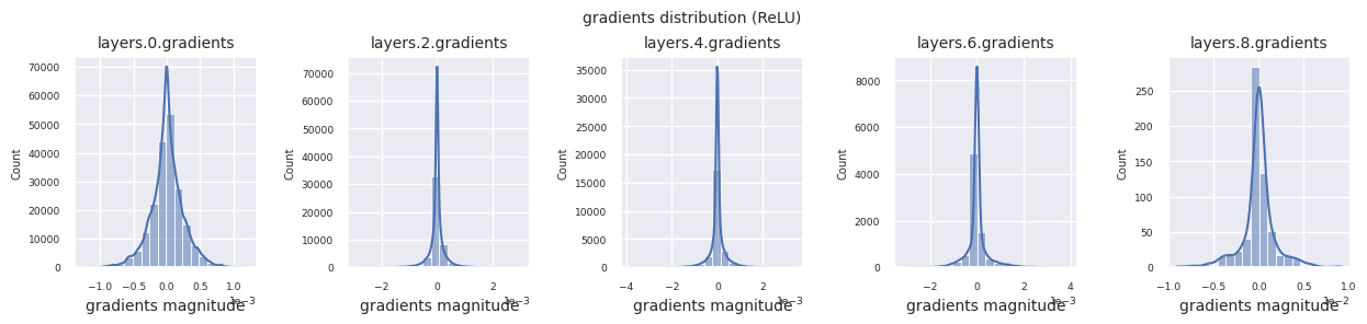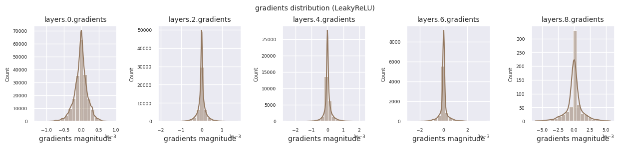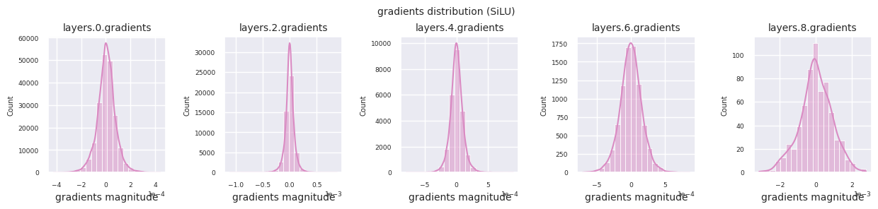 For each activation function, visualize the distribution of gradients during training and measure the ratio of “dead neurons”. (Use functions implemented in Chapter 1)