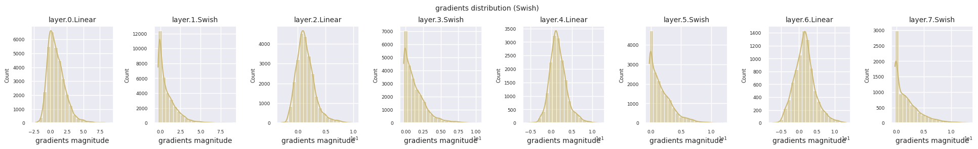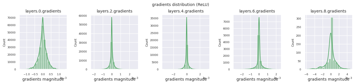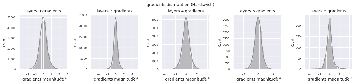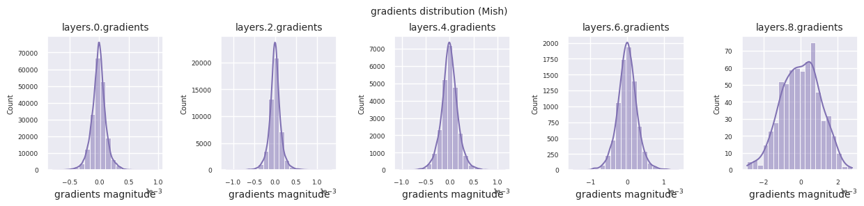 그래디언트 분포 시각화, “죽은 뉴런” 비율 측정: