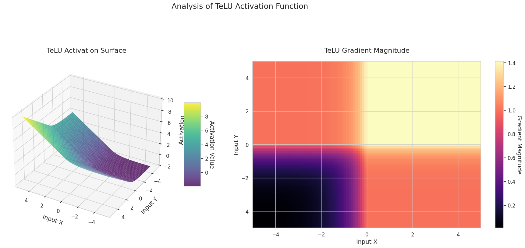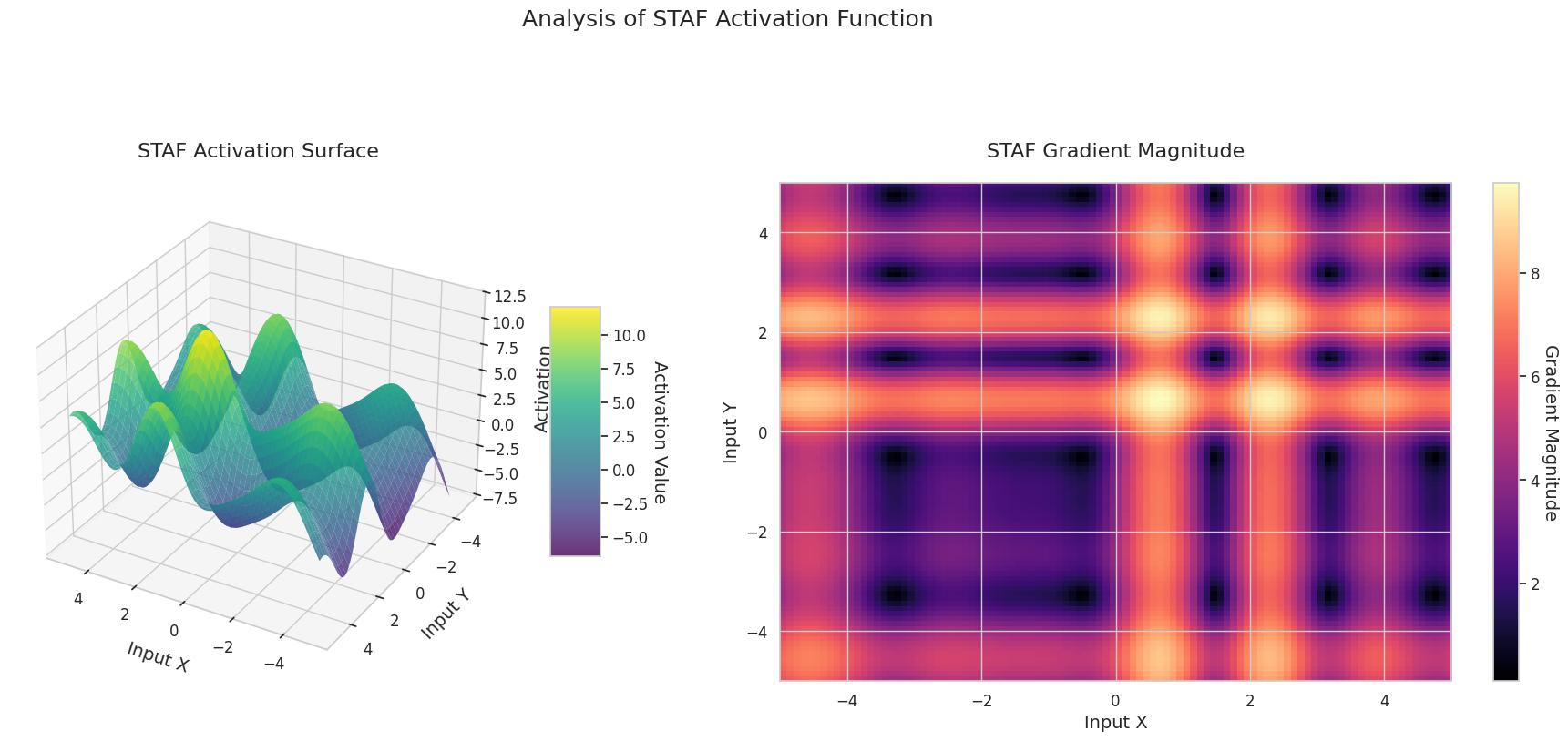 }STAF는 2025년 ICLR에서 소개된 최신 활성화 함수로 푸리에 급수 기반의 학습 가능한 매개변수를 사용합니다. ENN은 DCT를 활용하여 네트워크의 표현력을 향상시키는 방식을 채택했습니다. TeLU는 ELU의 확장된 형태로 alpha 매개변수를 학습 가능하게 만든 버전입니다.