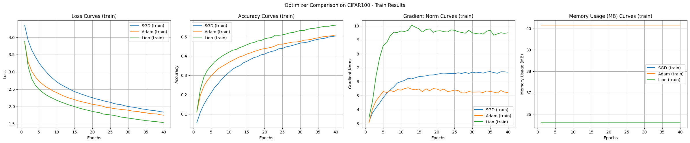 )그래프는 가우시안 함수로 근사된 손실 표면에서 SGD, Momentum SGD, Adam 세 가지 최적화 알고리즘의 학습 경로를 보여줍니다. 경사가 완만한 영역과 급한 영역 모두에서 세 알고리즘은 각기 다른 특성을 보입니다.